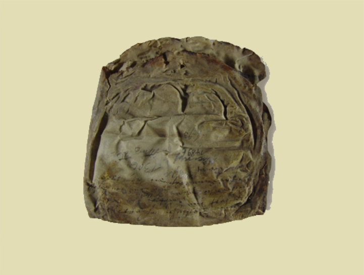Urkunde die durch Hitze schwer beschädigt wurde.